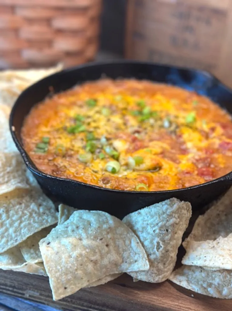 At Husker game nights and family get-togethers, you may even want double the recipe!! I love how it looks in my trusty old black cast-iron skillet surrounded by tortilla chips! The next best thing about this dip is the versatility!