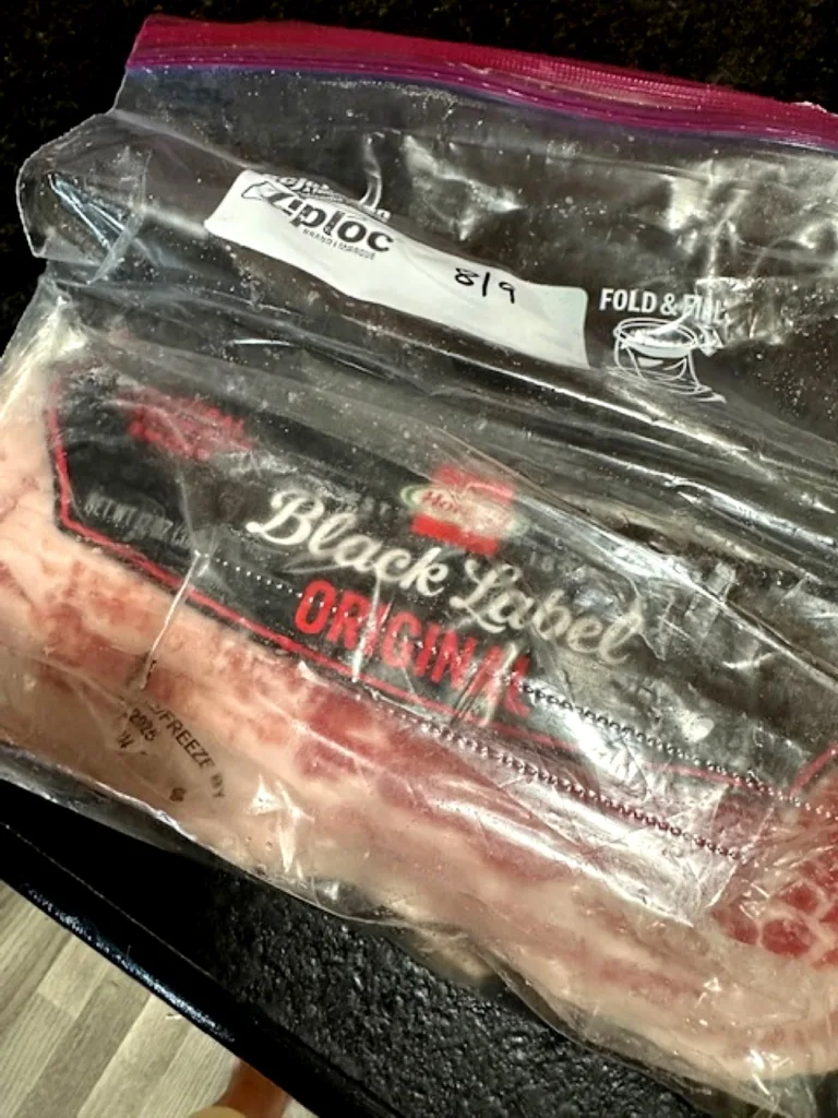 In my opinion, the BEST bacon you can buy is Hormel Black Label Bacon. Always remember to date your bacon when you return a half-package to the fridge! It's so easy to forget when you opened it!